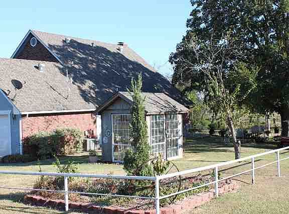 All fenced for livestock, pipe corrals, barn, 40x30 concrete floor shop, attached 40x24 open sided parking, storage, animal shelter has water, power. Cross fenced well maintained pasture. Very attractive 2 story spacious mostly brick home. 2580 sq feet on 4.69 +/- acres. Large master, jetted tub, separate shower, huge walk-in his and hers closets. XL BR upstairs with extra bonus dressing room. Office/ work-out/media room for multiple uses. Greenhouse,gardens, electic entry gate. Many other amenities.