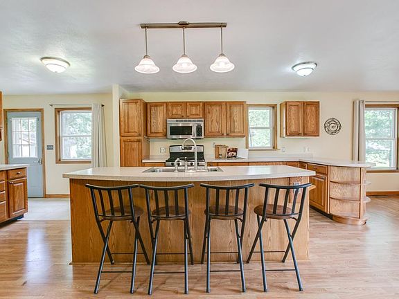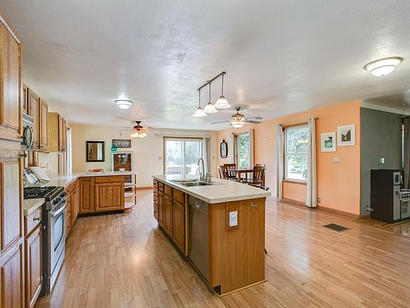 Welcome home to this beautifully updated one level close to it all! Large open concept living area with center island complete with stainless steel appliances and plenty of room for entertaining. Tons of potential in the lower level to create more living space. Two stall garage with more parking behind garage on this huge city lot. Fun porch in the backyard to enjoy the summer nights! Make this your home sweet home!