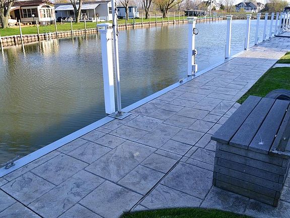Meticulously maintained 3 bed/2 bath waterfront home with 52 feet of deep water dockage and just minutes to Lake Erie. Beautiful open design with huge kitchen that features large island and open to family room with fireplace. Open dining and living rooms with vaulted ceilings. Master suite features gorgeous bath with heated tile flooring and huge tiled shower. Entertain in the 26'x11' tiled 3 season room with large serving bar. Beautifully landscaped with stamped concrete patio and walkways, composite decking, sprinkler system. All new seawall in 2004. New roof, siding gutters in 2012. Oversized two car garage with epoxy flooring and workbench. Assoc.fee only $250 per year. Just move in and enjoy the Lake!