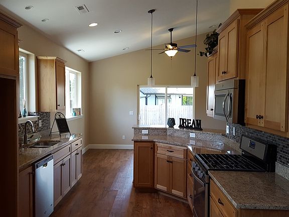 Beautiful brand new custom home in Hucrest. 3 BR, 2 BA 1818 SF. Split master suite w/large walk-in closet. Custom tile, granite countertops, alder dovetale custom cabinets, cultured marble shower, vinyl plank water proof floors. Craftsman door, under counter lighting, wainscoting, laundry room, covered patio, RV parking, fenced back yard, built by Shelby Miquelina Construction. Make this awesome home yours today.