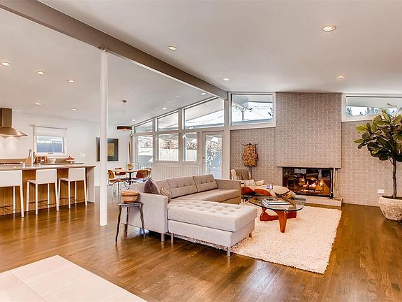 Back on the market with fresh paint and gorgeous re-finished wood floors! Mid-Century Modern Ranch living at it's finest! Fully renovated with a rare full finished basement. Exposed beams and beautiful wood floors accented by the original brick fireplace, all while keeping the charm of 1960s modern architecture. Upgrades too extensive to name, include: windows and doors, modern hardware, Hansgrohe fixtures, oak hardwoods, insulation throughout, Italian tile in bathrooms, new H2O heater, newer furnace, modern lighting, newer electrical, newer plumbing, cat6 cable & more! Open and spacious kitchen, including quartz island and counters, newer JennAir appliances, and custom cabinets. 4 bedrooms and 3 bathrooms, including the master suite, which boasts a huge walk-in closet with custom storage and shelving, and a spacious master bath with dual sink vanity and huge walk-in shower! Spacious backyard with covered patio and professional landscaping is the perfect private getaway for all seasons