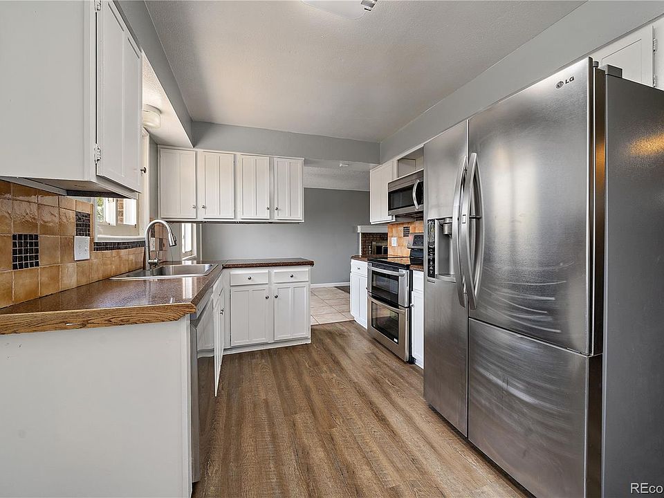 BACK ON THE MARKET-!BIG PRICE ADJUSTMENT! *NEW BIG TICKET ITEMS INCLUDING A/C, FURNACE, DRAIN LINE, ELECTRICAL PANEL WITH WHOLE HOUSE SURGE PROTECTOR, INTERIOR PAINT, LVT FLOORING, APPLIANCES & MORE~NOW YOU CAN FOCUS ON THE FUN STUFF*INSTANT CURB APPEAL WITH BRICK EXTERIOR, SHUTTERS, & FENCED IN FRONT YARD & NEWER RAISED GARDEN BEDS ALONGSIDE THE STEPS LEADING YOU UP TO THE FRONT DOOR*ENTRY WELCOMES YOU INTO THE COZY FAMILY ROOM CENTERED BY THE QUAINT FIREPLACE WITH BRASS ACCENT, HEARTH & MANTLE FOR ADDED AMBIANCE*FAMILY ROOM OPENS TO ADJACENT DINING ROOM & KITCHEN WITH THOUGHTFULLY PLACED WINDOWS FOR MAXIMUM NATURAL LIGHT*YOU WILL LOVE THE HOMEY EAT-IN KITCHEN BOASTING ON TREND WHITE CABINETRY, EARTHY TERRACOTTA COLORED BACKSPLASH WITH SQUARE TILE ACCENT, MATCHING NEW STAINLESS STEEL APPLIANCES & WALL PANTRY FOR ADDED STORAGE*EAT-IN BREAKFAST NOOK IS PERFECT FOR CONVERSATIONAL SEATING OR MORNING COFFEE WITH YOUR LOVED ONES~ROOM TO ADD A CORNER BANQUETTE FOR EXTRA WARMTH*KITCHEN HAS ACCESS TO BACK DOOR THAT OPENS TO MASSIVE PRIVATE BACKYARD WITH OVERSIZED PATIO OVERLOOKING LEVEL YARD WITH A COVETED SHED, GARDEN BEDS & PLENTY OF ROOM FOR ACTIVITIES & GATHERINGS~PERFECT FOR ENTERTAINING INSIDE AND OUT!*HEAD UPSTAIRS TO THE PRIMARY BEDROOM FEATURING A 3/4 EN SUITE BATH INCLUDING A WALK-IN SHOWER, VANITY WITH WHIMSY BACKSPLASH & WOOD CEILING FOR ADDED CHARACTER*TWO SECONDARY BEDROOMS & FULL BATH WITH TUB/SHOWER COMBO COMPLETE THE UPPER LEVEL*DON'T FORGET ABOUT THE LOWER LEVEL SECOND FAMILY ROOM, DEN OR FLEX SPACE COMPLETE WITH PLUSH CARPET & TASTEFUL BEADBOARD WALLS~USE TO SUIT*THAT'S NOT IT~BASEMENT WITH LAUNDRY ROOM, UTILITY SINK, HALF BATH & STORAGE GALORE*GLEAMING LVT FLOORING & AIRY DESIGNER PAINT*ATTACHED ONE CAR GARAGE WITH ADDITIONAL RV PARKING*CLOSE PROXIMITY TO 225, BUCKLEY AFB, DIA, DTC, CHERRY CREEK RESERVOIR, SHOPPING, DINING, TRAILS, PARKS, GOLF COURSES & MORE!