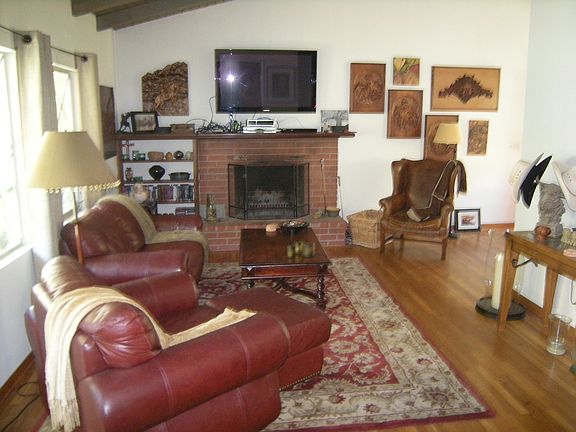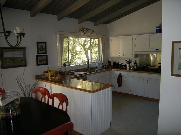 Charming home accessed over a bridge in a wooded rural setting beside Sycamore Creek with canyon views. Vaulted kitchen & living room ceilings,den,lots of potential.