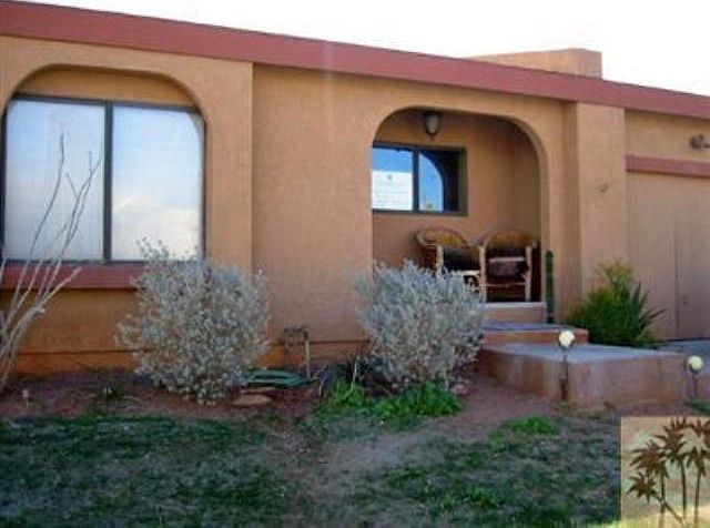 Bank owned property, make offer and save! Just fell out of escrow, bank accepted an offer of around $145K. Home needs a little TLC cosmetic fixer. This home sold for $300,000 2.5 years ago! The most bang for your buck in Palm Springs newer energy efficient A/C, pool equipment (heater & pump) for the salt-water pool, and an outdoor BBQ make it perfect for outdoor entertaining (cable ready TV enclosure on the patio built into the wall). Gated RV parking completes the exterior. The inside features vaulted ceilings with ceiling fans in every room. It's a small private lot but it's adjacent to a city maintained greenbelt area to run and play. Gated RV parking completes the exterior.