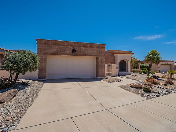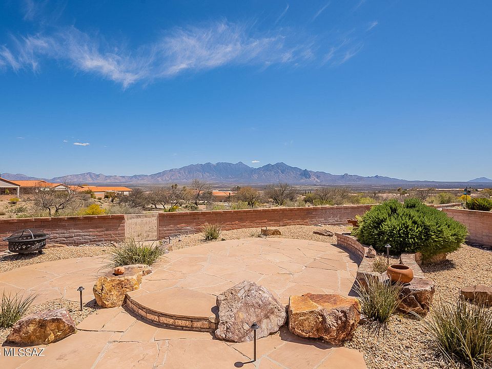 If you have been searching for a Green Valley home with one of the best views available. This is it! As soon as you step inside, you will be mesmerized by unobstructed views of the Santa Rita Mountains. This versatile floor plan features multiple living and dining areas all with sunning views. The home features lots of architectural touches and southwest decor with neutral tile flooring throughout most of the home. The kitchen with classic white cabinetry and stainless-steel appliances is versatile enough to suit any decor, and the efficient layout provides ample counter space and storage. The primary bedroom boasts an extended sitting area that can be utilized as an office, retreat, or hobby space. The main bathroom features a dual vanity, walk-in shower, and large closet. The guest room is spacious and offers plenty of privacy for guests. The oversized garage has plenty of space for vehicles or extra storage. The back covered patio offers panoramic views of the Santa Rita Mountains and has no rear neighbor.