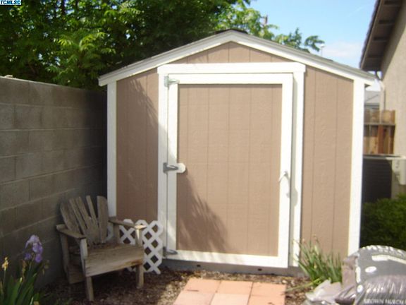 Well cared for 3 bedroom 1 3/4 baths in lovely Morea Manor developement. Upgrades include tile roof, brushed nickel fixtures, 2 tone paint, 1/4 panel cabinets in kitchen and stone exterior to name a few. The cheery entry leads to vaulted great room. Nice kitchen with large pantry & breakfast bar. Three bedrooms are at the west end of the house. Two inch blinds throughout and ceiling fans. Outside is beautifully landscapped with sprinklers. For outside fun, you will love the extra large covered patio. Home also features solar screens on windows, very nice large shed, rain gutters, etc. A great house at a great price.