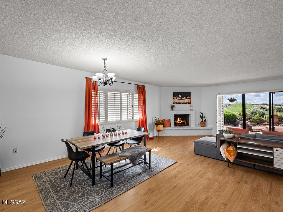 Nestled in the highly desired Canoa Vistas neighborhood, your new home offers breathtaking, expansive mountain views and the ultimate privacy with no rear neighbors. Enjoy the serene beauty of Elephant Head Butte, especially at sunset, from your backyard. This gorgeous property is surrounded by eight golf courses and 14 Green Valley recreation facilities, with plenty of walking and biking trails nearby. Located just minutes from Madera Canyon, a world-renowned birdwatching and hiking destination, outdoor enthusiasts will feel right at home! The brick path will guide you inside to find new flooring and fresh paint throughout, creating a bright and welcoming atmosphere while the gas fireplace gives a cozy feel. The kitchen is inviting, with navy cabinets, large windows that flood the space with natural light and an extra-large pantry for all your storage needs. The primary bedroom features an en suite bathroom and a spacious walk-in closet, while a versatile den or office with double doors offers additional living space.