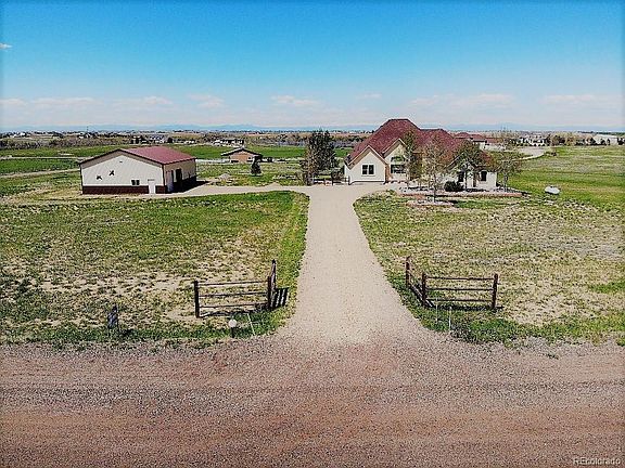 Great walkout basement ranch home with unbelievable views of the mountains and Horse Creek reservoir from a large wood deck. This custom home has a great open feel with lots of windows and natural light. As you walk in you're greeted with those beautiful mountain views. The open kitchen has all the latest stainless steel appliances, tile counter tops, center island, and breakfast nook. The open family room has vaulted ceilings and plenty of room for any furniture arrangement with plenty of room to spare. Just off the entryway and kitchen is the formal dinning room with hardwood flooring with built in design accents. The master suite has a large 5 piece bath and walk in closets. All bedrooms have walk-in closets and are just a little bit bigger than normal. The full unfinished walkout basement has a plumbing rough-in and has been wired for power already. The shop building has been insulated and wired for 220 volt service. Hudson address. For marketing reasons, we listed in Brighton
