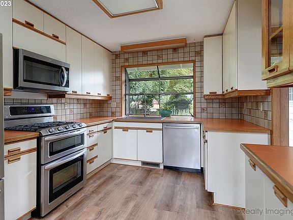 Spacious ranch style home with RV Parking! One level living on the main floor with original hardwood floors and new luxury vinyl floors. Open kitchen with newer stainless steel appliances, built-in microwave, gas range, custom pot rack on brick accent wall, open nook area and garden window. Private backyard features covered deck, patio, multiple planting beds, robust garden, tool shed and newer screened gazebo. Ample RV or boat parking with electrical hookup. If you're a hobbyist, you'll love the 12x23 workshop on the lower level with built-in work bench. Additional features include: beautiful exposed beams, full basement, central AC, lush front yard, newer roof, two wood-burning fireplaces, all appliances included and more! [Home Energy Score = 5. HES Report at https://rpt.greenbuildingregistry.com/hes/OR10221365]