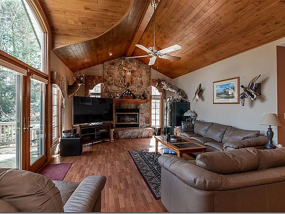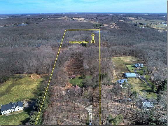 Enjoy life and everything NATURE has to offer in your CUSTOM DESIGNED and QUALITY CONSTRUCTED 3,890 SF 4 Bedroom home situated on a DEEP 11 ACRE WOODED lot extending to CUYAHOGA RIVER w/spring-fed POND. Home has EXCELLENT curb appeal w/its BRICK and VINYL SHAKE siding w/front porch and NEWER long concrete driveway. Home was designed to take advantage of the SCENIC SETTING w/its EXTENSIVE and WELL-DESIGNED Windows providing PANORAMIC Views. SOLID Wood Doors and Crown Molding. Great Room w/Vaulted SPECTACULAR WOOD CEILING and Full Wall Stone WBFP. OVERSIZED Eat-In Kitchen w/ EXTENSIVE cabinets, UPSCALE STAINLESS appliances (Bosch double oven and Sub-Zero Fridge) & 2-tier breakfast bar opening to Eating area w/elegant built-in glass cabinets. The Family Rm off Kitchen is SURROUNDED by windows providing perfect space to relax. Elegant Study w/Wood COFFERED ceilings w/WANES surround w/built-in cabinet. 1st FLOOR BEDROOM w/beautiful window seat and adjacent Full Bath. 1st floor Laundry. 2nd level offers 3 SPACIOUS bedrooms ALL w/walk in closets and 2 full baths. Owner's Suite w/gas fireplace w/access to private deck w/white railing and Glamour Bath w/HEATED FLOOR w/Octagon ceiling, deep jetted tub. Enjoy cookouts on your 1,100 SF wrap around deck, Gazebo PLUS 648 SF BARN w/concrete floor & dual door entry. Enjoy the property's 11 acres and pond. 3 car garage w/8 & 9 ft doors w/H/C Water & Dog Wash, 4 Zone Heating, dog fence & security system. Close to highway and Village.