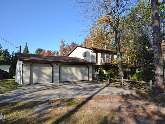This 1,720 sq ft. home features 2 bedrooms, 2 baths, large living room with stone natural gas fireplace, chef style kitchen and more! Also, a huge 3 car attached heated garage with work bench and detached 16x20 garage with electric and built in work benches. Updated heating, plumbing, and appliances. Close to ORV and Snowmobile trails. Great fishing at the lakes out front!