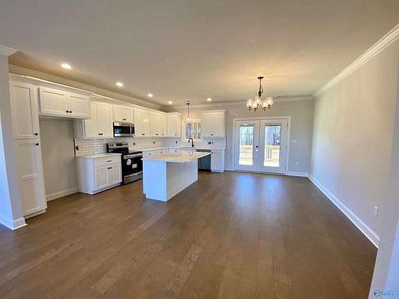 NEW full brick home in Limestone county offers an OPEN FLOOR PLAN with 3BR, 2BA. Includes spacious open living areas, kitchen island overlooks dining area which has french doors that open to covered deck with great view of a beautiful backyard area. Primary bedroom suite offers walk-in closet & deluxe private bath with large walk-in shower & double vanity. Hardwood throughout, solid surface counters & stainless appliances in kitchen, & a whole lot of other features to enjoy in this wonderful home! Prime location west of Athens, convenient to TVA/Brownsferry, Rogersville, with an easy commute to the Shoals, Madison or Decatur plus it's just a short trip to Elk/TN Rivers for fishing/boating!