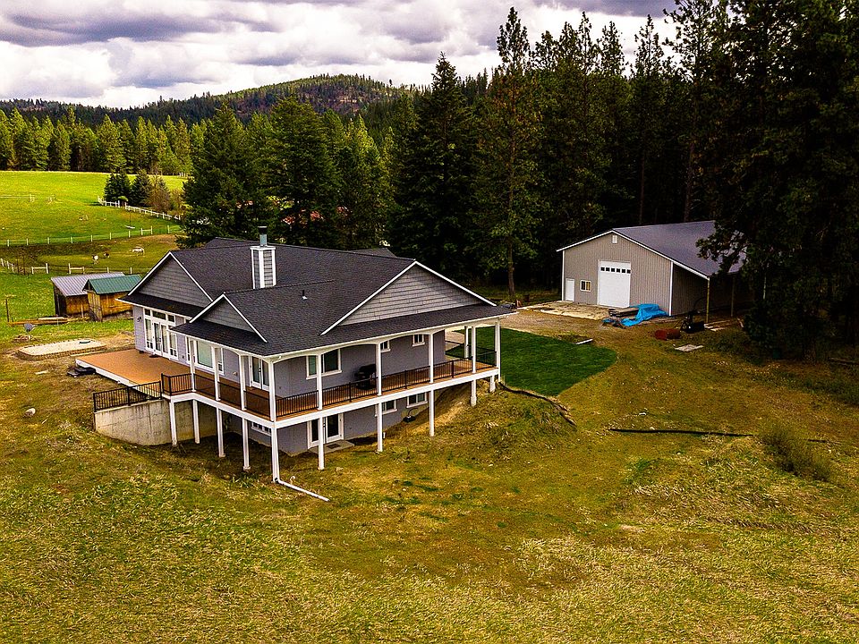 Quality built rancher on 40 acres at foothills of Mt. Spokane. Hardwood floors, natural woodwork, granite counters, vaulted ceilings, enormous pantry, m/f utilities, ceramic tile baths. Finished daylight bsmt with family room, 3 bedrooms and full bath. 1,100 sqft wrap around partially covered deck, attached oversize double garage. This gated property is entirely fenced and cross fenced, includes a 1,920 sqft insulated multi-purpose building and 576 sqft carport. Ideal Horse set-up.