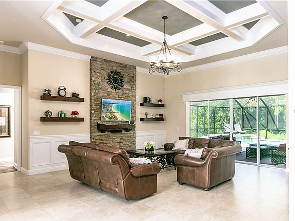 - Interior Features: Ceiling Fans(s), High Ceiling(s), Vaulted Ceiling(s), Central Vaccum, Crown Molding, Walk-In Closet(s), Window Treatments, Open Floorplan, Solid Surface Counters, Eating Space In Kitchen, Wet Bar, Tray Ceiling(s), Coffered Ceiling(s)