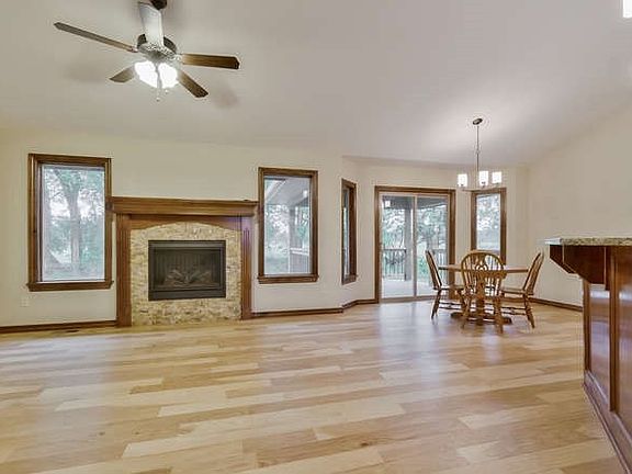 Great floor plan and fully finished at a great price for 5 beds 3 baths 3 car home with big family room and wet bar. Kitchen and all bathrooms have granite counters and tile floors. Home backs up to a tree row in a secluded neighborhood that includes access to three small lakes, with a paved sidewalk around the 1st one, neighborhood pool and pool house, walking trails going into the woods with a picnic table and fire pit. AND, there are no high wires, busy traffic, flight patterns, or trains to interrupt this natural setting. Price includes sprinkler system and sod in front and back.
