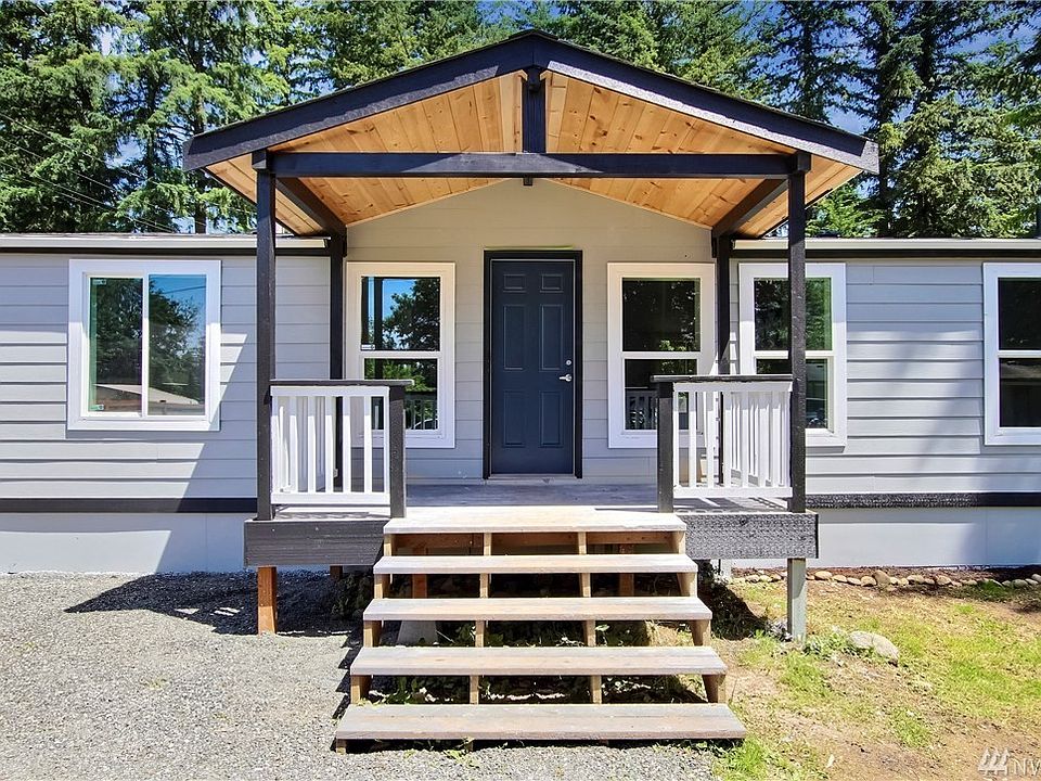 Fully remodeled! Feels like a stick-built home! Everything is new: new roof, new drywall, new paint, new floors, new water tank, new kitchen, new doors, new insulation, newly cleaned crawlspace! Move in ready! Enjoy the well laid-out floor plan, and luxurious master bathroom with walk-in closet! This beautiful home has a living AND family room off of the dining room. New slider doors lead out to a new deck for entertaining overlooking huge 1/3 acre lot!
