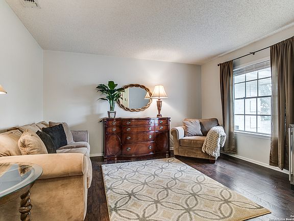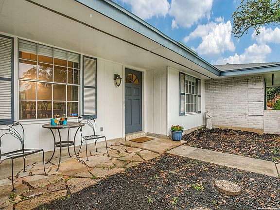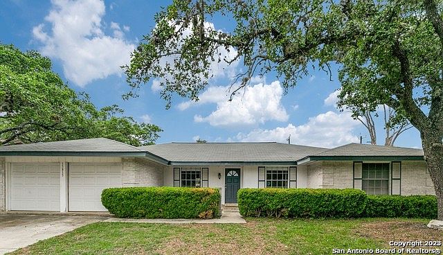 This move-in ready 1-story home (4/2/2) is in a great location along the 281/1604 corridor! It is a few minutes from HWY 281 and Thousand Oaks on a popular street in a quiet, well-established neighborhood, only 0.5 miles from Blossom Park. It has great curb appeal with a private courtyard to enjoy the deer. As you walk in, spacious living and dining rooms greet you while the large family room draws you in further. The family room has a vaulted ceiling with beams giving you a sense of openness and tranquility, a custom-built wood burning fireplace offering a cozy retreat on those cold nights, and built-in bookshelves and cabinets with plenty of storage. The high ceilings extend from the family room into the breakfast room and kitchen to showcase the open floor plan. The updated kitchen has granite countertops, stainless-steel appliances, and a utility room next to it for convenience. A spacious master bedroom has plenty of room for a king-size bed and a sitting area! It has an en suite bathroom that has been updated with a granite countertop and a large shower with tile to the ceiling. A separate vanity and dressing area between the bathroom and walk-in closet offer additional space for getting ready in the mornings. Three sizeable bedrooms and bathroom are on the opposite side of the home. The bedrooms can serve as office space or work out rooms. The updated secondary bathroom has a granite countertop, tub/shower combination and many cabinets. All flooring in the home is scratch resistant laminate wood-like planking and tile, no carpet! There is extra storage space in the 2-car garage and a large metal storage shed in the backyard. The backyard is huge with room to add a pool and an outdoor kitchen. A new air conditioner was installed in June 2022. You must see this home to appreciate its open floor plan and all it has to offer!
