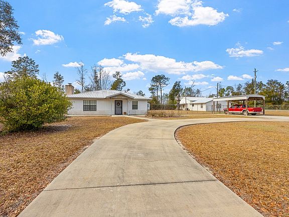 SELLING AS-IS w/ all items pictured. One of a kind property, cleared 1.2 Acre corner lot. Dwelling featuring 2 bedrooms, 2 baths, spacious living room w/ wood burning fireplace, custom built-in bookshelves, functional kitchen w/ island, opening up to large addition w/ space for sitting, reading, at home office, large dining area etc. Additional, wide open floor plan, heated & cooled workshop on front of property facing Hwy 20, plumbed for the addition of bathroom if desired, 2 large metal storage sheds, one featuring covered patio perfect for family gatherings, birthday parties or the avid griller & another small pole barn, open air shop for storing yard equipment tools or just "piddling". Washer Dryer located in well pump house, & separate septic system on back half of property which could be utilized for camper or additional homesite.