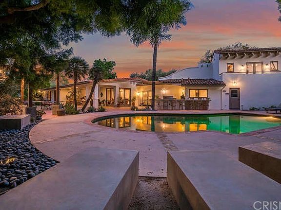 Location, Location, Location?This Montecito inspired California Hacienda is located South of the Boulevard in one of Encino's most coveted neighborhoods in the exclusive Lanai school district. A private Cul De Sac location and a generous flat lot of 14,950 square feet create a perfect setting for this home. True to its architectural roots, this home was designed and recrafted to embrace the concept of the California indoor/outdoor living style. A great balance of warm traditional architectural elements and todays modern technologies and finishes make this open floorplan a truly inviting entertainers space. The home has tasteful updates throughout and the public areas have walls of glass that flood the home with natural light and look out onto the manicured grounds. Outdoors you will find inviting entertaining areas including a sit-down bar and BBQ center. Freeform swimmers pool, an Al Fresco Dining gazebo all set against the backdrop of thoughtfully designed gardens and water features to complete the experience.
