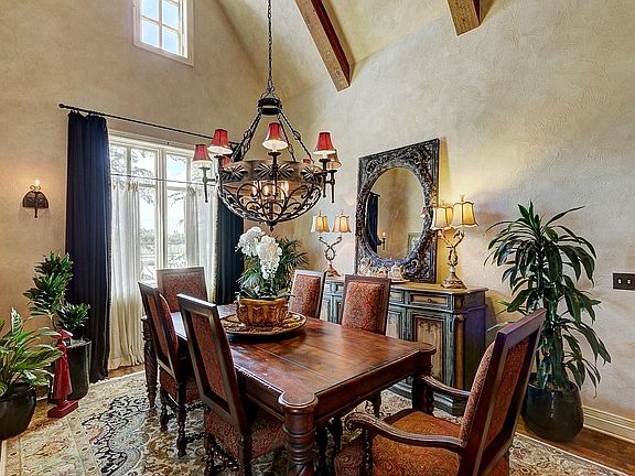 Wind through Fairview Farm to a quaint location named The Abbey. There you will find 15816 Chappel Ridge Ln. The whimsical ivy and lush landscaping provide an inviting front yard setting to this one story home. Through the front door you are met with soaring ceilings and rich hand scraped flooring that extends throughout. To either side of the entry rest a formal dining room and sitting area; cathedral ceilings and arched entries provide beautiful architectural design. The open living area with grand fireplace and exotic lighting fixtures help highlight a chef’s ideal kitchen. The kitchen is gorgeous and functional complete with a specialty mosaic tile and copper farm sink. Featured appliances are a Sub-Zero refrigerator and Wolf six-burner stove. The kitchen is completed with a wet bar area including hammered copper sink, built-in wine refrigerator and ice maker. This floor plan not only caters to entertaining, but also to privacy. Each of the bedrooms are located in opposite corners of the home. The master suite area secluded in the back, is perfectly situated with a sitting area that over looks the patio. Just beyond the bedroom is a spa like master bathroom with a Toto relaxation tub and oversized glass shower. Separate double vanities provide ample space in this light and airy bathroom. Guest will also be comfortable in either the junior suite or third bedroom both of which have their own private baths. The junior suite features built-ins and sitting area with private access to the patio. Discovering the side yard is sure to excite. Once past the french doors you are met with a an enchanting courtyard like atmosphere with fire pit and swim spa. In the mood to dine outside? A wood accented covered patio houses an outdoor kitchen and eating area; grill, smoker and mini refrigerator included! Extra amenities continue to spill over into the 3 car tandem garage. This over the top area even doubles as an indoor work station! Additional storage cabinets line the walls of the garage which includes extra insulation and epoxy finished flooring. Not to be forgotten the garage also contains an in-ground storm shelter and versa lift to the attic. Dreaming of a luxurious countryside cottage? Welcome Home.