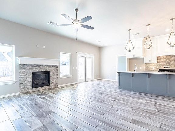 This Julie floor plan in IronStone is so beautiful! It includes 1, 830 Sq Ft of total living space, which includes 1, 700 Sq Ft of indoor living space and 130 Sq Ft of outdoor living space. There is also a 395 Sq Ft, two car garage that has a storm shelter installed! This Julie has 4 bedrooms and 2 bathrooms. The Master suite that has raised ceiling detail, spacious walkin shower, and HUGE master closet with seasonal hanging and access to the laundry room! The large living room has a gorgeous gas fireplace and large windows for natural light! 3 CM quartz counter tops, stainless steel appliances, gorgeous backsplash, and white custom cabinetry are just a few features that this kitchen has to offer! The outdoor fireplace, gas hookups, and cable outlets. Property is fully fenced! Other amenities that this home has to offer include Smart Home Technology, a whole home air filtration system, Rinnai Tankless water heater, R-44 insulation and a TechShield radiant barrier!