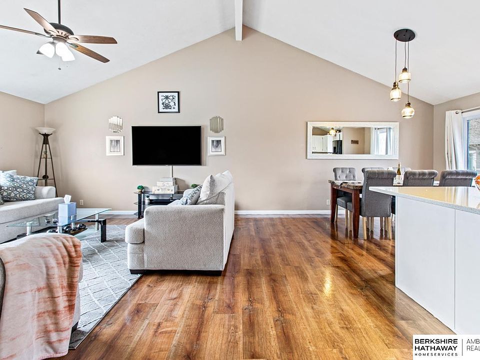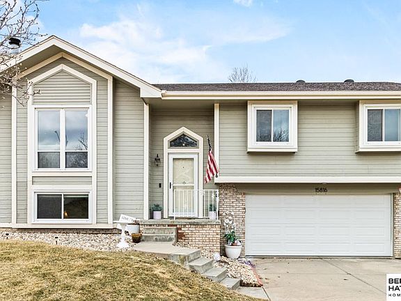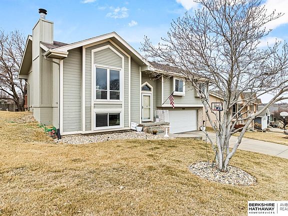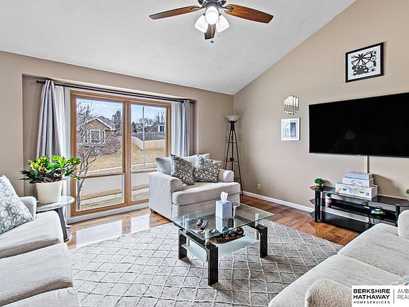 Darling 3 bed, 3 bath split level home located in west Omaha! Vaulted ceiling in the living room with large windows that bring in tons of natural light. Open concept kitchen with island and lots of cabinet space + pantry. Hardwood floors throughout, with carpet in the bedrooms and basement. Basement is finished with a beautiful fireplace. This is one you don't want to miss!