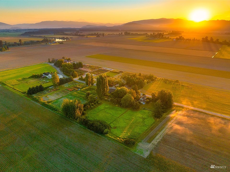 Rare opportunity to acquire approx. 5.33 acres (Organic for four decades) in the heart of Skagit Farmland with mature fruit orchard, nut trees, berries & lush veg gardens. A sanctuary for raptors, songbirds, snow geese swans and 200+ more species. Classic 2-story farmhouse lovingly maintained & updated with a modern kitchen with canning room. Open views from every window, across agricultural fields to foothills, Mt. Baker to Mt. Rainer, sunrise AND sunset. Multiple outbuildings include barn/loafing shed, huge office, storage room, & detached garage w/studio & kitchen. Microwave Internet access in house & studio. Dream property, be you a bird watcher, an organic farmer, home gardener, or someone who wants a peaceful, scenic rural life.