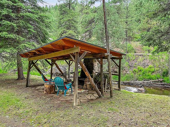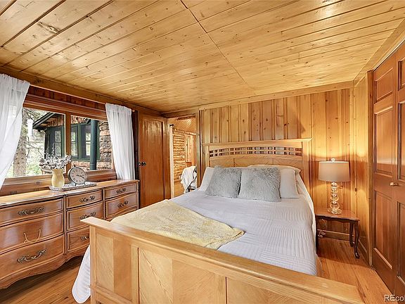 Escape to your perfect mountain oasis nestled in Pine's picturesque Sphinx Park. This enchanting cabin comes partially furnished (except for staging furniture) and has rare 3-4 parking spaces, plus over 1300 finished SF on the upper level alone... not to mention a lower level with walkout access! It seamlessly blends rustic charm (with the babbling frontage of Elk Creek) with modern comfort--promising a retreat like no other. Step inside to discover a rustic haven with floor-to-ceiling hardwood and marble kitchen countertops and a cozy fireplace in the great room. This cabin also boasts a refinished lower level with a new double pane window, new insulation, wall fireplace, new blinds, and an exterior french door that all add to the charming space. As for convenience, an attached storage space is right next to the lower level with exterior access. A brand new furnace and water heater guarantee year-round comfort. Windows that enclose the front porch bathe the interior in natural light, framing stunning views of Elk Creek and the majestic wildlife that frequent its banks. A covered outdoor conversation pit is brought to life with the brick outdoor fireplace with Elk creek running right behind it. Beyond the cabin walls, the community of Sphinx Park awaits. Embark on leisurely strolls to Bucksnort Saloon (opening soon). Alternatively, hike beautiful Pine Valley Park with tons of trails as well as others nearby! A brief 10-minute drive leads to world-class mountain hiking/biking in Buffalo Creek or flyfiishing along the North Fork South Platte River and Cheesman Canyon It is surrounded by 500 acres of Jefferson County Open Space and adjacent to thousands of acres of Pike National Forest.Whether you seek a weekend retreat or a permanent sanctuary, this cabin offers the perfect balance of tranquility and convenience.