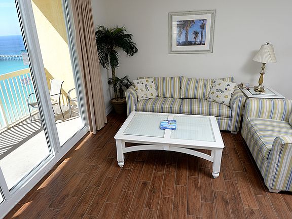 This 1BR/2BA unit at Calypso is in FANTASTIC condition! The sellers have recently upgraded the flooring and removed all carpet so it is much easier to maintain as a rental/investment condo. It's always nice to have a second full bath in a 1BR unit, especially when you can sleep 6 comfortably because of the bunks. This unit is being offered fully furnished and rental ready. In fact, purchase now and take over any pending rentals that are on the books for 2014! Calypso remains the only gulf front condo in Panama City Beach that is within comfortable walking distance to Pier Park.