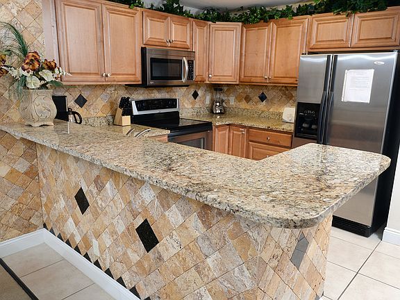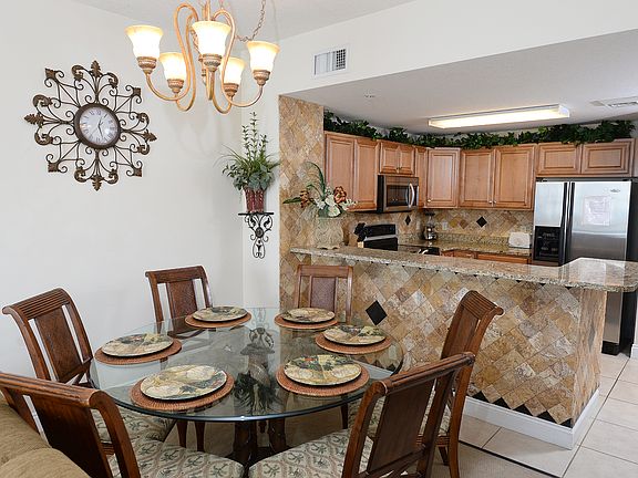 **DRAMATIC UPGRADES** This 2BR/2BA + BUNK is one of the nicest units at Calypso. Some of the highlights include impressive tile work on the bar, stainless steel appliances and tile balcony . Upgraded custom cabinetry and fixtures add to the elegance while the professional decor is really something special. Calypso Resort and Towers remains one of the most popular rental complexes in Panama City Beach being the ONLY condo complex that is within comfortable walking distance to Pier Park. The master bedroom offers spectacular views of the Gulf, a private bath, walk-in closet and sliding door to the private balcony. The second bedroom has a queen size bed and has direct access to the hall bath. The third bedroom has a day bed which is perfect for kids.