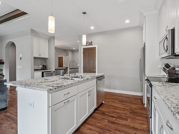Come see this stunning single family one story home with a walkout basement. This home of offers custom woodwork throughout and an open floor plan with a large kitchen for entertaining guests. Enjoy the large island for cooking and eating a meal. The main level as all living facilities on one-level and boasts tons of natural light. The lower level is also finished to perfection as you walk out to a private fenced yard with a large deck and patio for enjoying all seasons. Do not miss this amazing home with updates galore located in a prime area on a cul-de-sac and close to many shops, trails and parks.