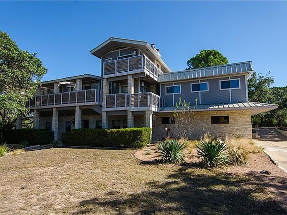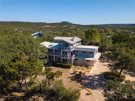 Welcome to beautiful Volente! This home is truly unique, with too many incredible features to list. Live a stone's throw from Lake Travis, with awesome views from the balconies of this 3-level home. Impeccably maintained, it's a classic with many contemporary touches and incredible attention to detail. This home can accommodate your large family and guests, with 4 bedrooms, 3 full baths and 3 half baths and 3 living areas. Add in 800 square feet of balconies across the front and the back, a pristine above-ground pool with decks for lounging, and gorgeous views of Lake Travis from the third level, and you have a magnificent family retreat. The lot has over an acre of natural space. It's 20 minutes to the Apple campus, less to the Lakeline area, and even less to Four Points at 620. There's plenty of room to store a boat, RV, and other toys. Marina access is minutes away. Enjoy lake living at its finest!