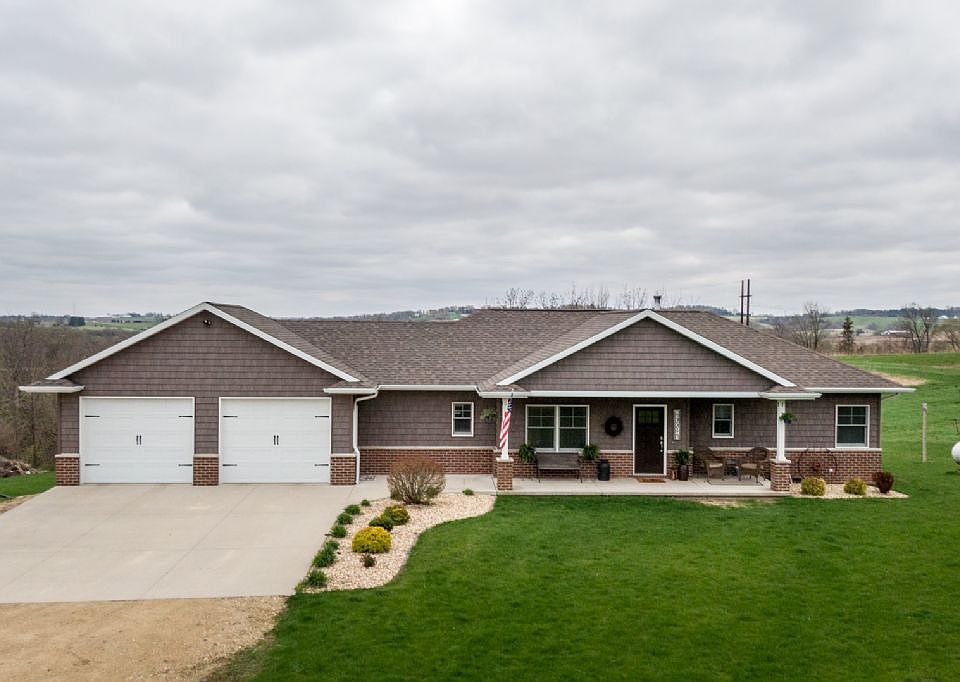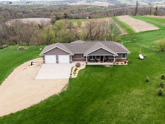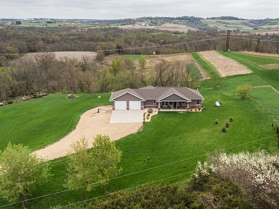 Don't miss your chance to own this beautiful 4 bedroom, 4 car garage home on 11 acres 10 min from the West End. The main level of the home features beautiful vaulted ceilings over the living room, granite countertops and stainless steel appliances in the farmhouse kitchen with Barnwood tray ceilings and a dining area that looks out over the amazing backyard. The master bedroom is also on the main level and features 9X9 ft walk-in closet and has an attached master bath with a jetted tub and gorgeous cabinets under a his and her sink. In addition to the master bedroom, there are two other bedrooms, laundry and two full baths on the main floor. Downstairs in the finished walk-out basement, there is a wet bar and theater room, both great for entertaining! Also on the lower level are two bedrooms, a full bath, workshop, and a storage area. Outside the home, you will find a treated wooden deck, porch and patio perfect for summertime cookouts! Other amenities include: zoned heating and cooling, a wood burning fireplace, Andersen windows, large covered front porch, 2 decks, SPECTACULAR views out of south-facing windows, land borders heritage trail with an amazing bluff view of the trail and the Little Maquoketa River. This home is truly a site to see! Call the homeowners to schedule a private showing! *Note to prospective buyers Hales Mills road is currently under construction and closed to traffic*