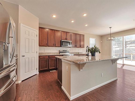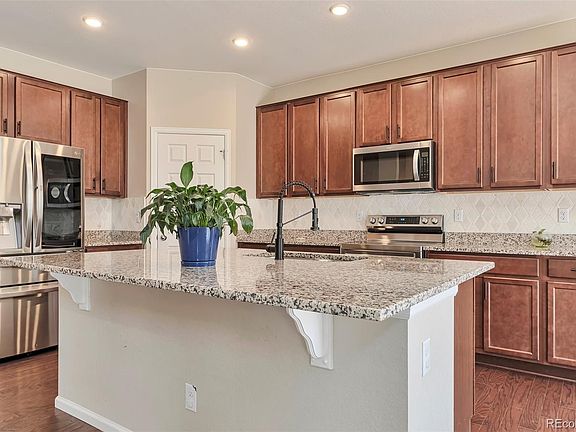 Welcome to this beautifully updated home, boasting am energy-efficient design by Meritage Homes. New flooring and paint throughout, this immaculate residence offers an open floor plan, perfect for entertaining. The spacious kitchen island and second-story ceiling family room with a gorgeous chandelier create a welcoming atmosphere filled with natural light. Enjoy a secluded office/study on the main floor, complete with French doors for added privacy. Upstairs, discover a conveniently located laundry room along with a large master suite, Jack-and-Jill bedrooms, and a guest bedroom. This home comes pre-wired for a security system, equipped with dual climate control, and features wiring for cable in every room and the basement. Located in the Trails Edge subdivision, you'll enjoy easy access to the Denver Tech Center, Park Meadows Mall, Arapahoe Crossing, and downtown Parker. The neighborhood amenities include parks with walking trails connecting to Happy Canyon Trail. Plus, with proximity to both I-25 and E-470, commuting is a breeze. Don't miss out on this rare opportunity to own a lovely home situated on a greenbelt for added privacy, complete with a large covered front porch for enjoying the outdoors in style. Schedule your showing today!