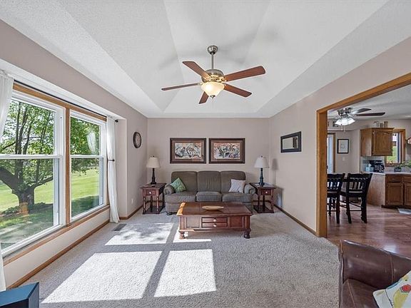 Over 3 acres and jam packed with upgrades and extras! This 1996 build features a spacious layout on four levels. Newer roof, gutters, windows, and garage doors. GIANT deck off the kitchen with pristine 27' pool and hot tub. It's the perfect spot to unwind and enjoy the peace and quiet of your slice of paradise, made even quieter by a non-through street with virtually no traffic besides your neighbors. On the property there's a gentle slope from back to front and space for so many activities, gardening, animals, etc. There are three separate areas for gardening with underground water lines already in place! There's a spring fed pond near the entrance, and a newer pole barn outbuilding with electric service including 240 volt. Highly esteemed Kearney schools, and the recently built Dogwood Elementary School just a few minutes to the south. This is picture perfect rural living, come see for yourself!