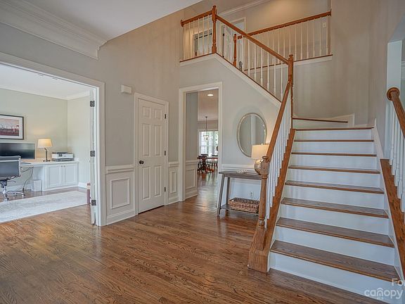 This stately, brick faced home sits on a .54 acre lot at the end of a culdesac in the sought after Birkdale neighborhood. The main level boasts an open floor plan with a formal living room, large dining room, study with french doors, half bath, two story great room opening to a bright kitchen with stainless appliances, granite counters and walk in pantry. Wood floors throughout. Step out into a large screened in porch which extends to additional open decking and relax in the large, tree lined, private backyard. Upstairs has the primary suite with a walk in and built out closet, large remodeled bath with a soaking tub. Three additional bedrooms with one having an attached bath, a spacious bonus room and additional bath. The back staircase looks down upon the 2 story great room. You can't beat the location with the shops, dining, entertainment and open spaces for meeting up with the community in Birkdale Village. This special property will not last long so book your showing now!