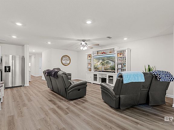 Welcome to 15819 Laurelbrooke Loop, Fairhope, AL 36532! This well-maintained Ryder floor plan offers 2,031 square feet of comfortable living space with an open floorplan and luxury vinyl plank (LVP) flooring throughout. The 8-foot ceilings create an airy and inviting atmosphere. The kitchen features granite countertops, ample cabinetry, and a spacious layout perfect for cooking and entertaining. The primary suite includes an en-suite bathroom for added privacy. Ceiling fans are installed in all rooms for year-round comfort. The landscaped yard is fully fenced with a wood fence that includes a gate for boat storage, plus two additional gates in the backyard. The garage features durable epoxy flooring, and the attic is equipped with plywood flooring for additional storage. All information is deemed reliable but not guaranteed. Buyer or buyer’s agent to verify all details important to the purchase. Schedule your showing today to see everything this beautiful home has to offer! Buyer to verify all information during due diligence.