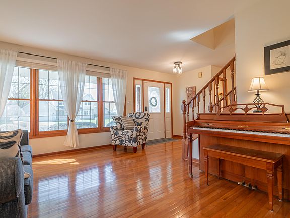 Welcome to this stunning home located in the heart of Porter Cove. Enjoy relaxing summers sitting on this inspiring front porch! Upon entering, you are greeted by beautiful hardwood floors throughout the main level. The kitchen features granite countertops, an eat-in island, as well as a formal dining room and living room. You will be filled with all of the coziness while enjoying the wood burning fireplace in this open-concept living space. The recently carpeted upper level has a greatly sized primary bedroom with an en-suite bath. Additionally, there are two other bedrooms upstairs with one of them large enough to convert into a 4th bedroom as originally intended. You are sure to LOVE the upstairs laundry so that you won't have to cart your clothes up and down the stairs! The finished lower level has egress access to ground level with large rec. room, potential bedroom, bath, and additional unfinished storage. Last but not least, this sprawling deck is sure to be a hit with all of your outdoor gatherings! This yard is nestled in the most peaceful spot to sit back, enjoy, and take in the memories that come along with this beautiful property. Porter Cove playground is conveniently located along the Prairie Duneland Trail and minutes to our Lake Michigan beaches, shopping, schools, parks and commuter rail lines. Newly installed high efficiency heating and air conditioning units with zones for main level and upstairs. What else could you possibly need? Come make this home yours!