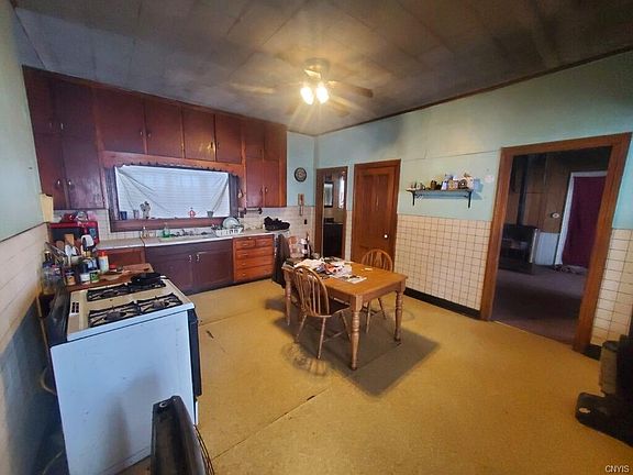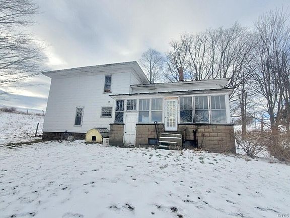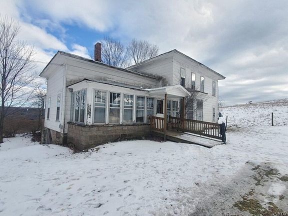 Located in southern Steuben County, this two-story home lays along a paved road and is surrounded by a large dairy barn, pole barn, and several other outbuildings. The sturdy farmhouse features a renovated bathroom and includes large rooms with high ceilings. When walking into the front or back enclosed porch, let your mind wander with all the customizations you could create as you bring this farmhouse back to life. The large post and beam dairy barn has most recently been utilized for various livestock. It was previously used for milking up to 70 cows for many years. Other buildings on the property include a 40 x 40 pole barn with 14 ft. doors, an insulated workshop, sap house, and other sheds for storage. Surrounding the buildings are 30 acres of rolling fields and pastureland, great for grazing livestock. The balance of the property consists of overgrown fields, brush, apple trees, and some hardwoods. There is an existing lease on the property with established oil wells that are being maintained by a local company. The seller is reserving all rights and royalties to the existing wells. However, the new owner will receive FREE natural gas to the home and buildings.