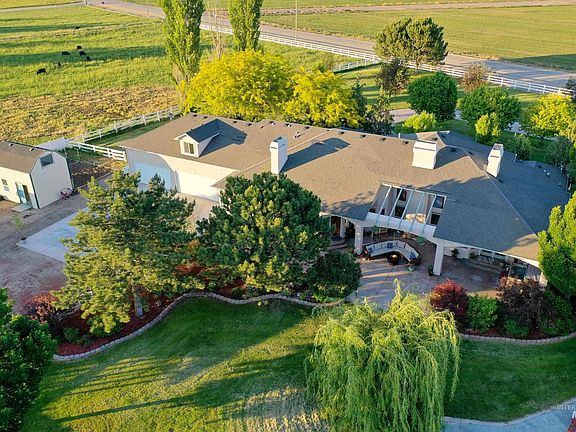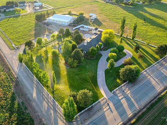 $100,000 price improvement for you to personalize this luxurious 10 acre 4600 sq ft home and property just south of Meridian! The seller just reduced the price today so you can make this "your home". Don't miss the virtual tour! https://www.hommati.com/3DTour-AerialVideo/unbranded/1582-E-Bramble-Ln-Meridian-ID--HPI10928101 New Water heater, refrigerator, dishwasher! New carpet & interior paint. Large 10,500 sq ft shop/barn with office space, kitchen & bathrooms, greenhouse, chicken coop, garden area. Minutes from Kuna, Meriidian, Boise and the airport. 3 fireplaces plus a wood stove! 5 bedrooms plus 2 office areas and upstairs bonus room (with full bath). Oversized Covered patio for entertaining boasts hot tub, water feature and beautiful sunsets! R/O water system plus security system included. ....one of a kind Gentleman's Ranch! Agrucultural Tax exemption! Shop has 20 hp rotary air compressor, alarm system and 3 phase power. Owner operated business allowed with no retail, limited employees.