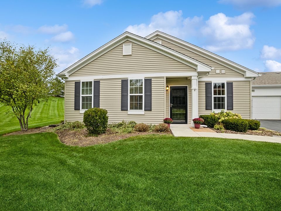Beautiful ranch home in Carillon at Cambridge Lakes Adult Community. This well-maintained Whitney Model Ranch is sitting on a premium lot with exceptional views. Home has so much to offer such as 9'ceiling throughout. Open floor concept, large living room as you enter from the main door, formal dining room, with access to great size back patio! Beautiful kitchen offering new Stainless-steel range and newer SS appliances, 42" tall cabinets and Granite counter tops. Recently painted guest bedroom and both bathrooms. Great size primary bedroom with 2 custom closets both offering ample space for storage. Full primary bathroom with double vanity. Good size 2nd bedroom/office. 2nd full bath right by the second bedroom for easy access, 2 car Garage. This community offers great amenities such as Clubhouse, indoor and outdoor swimming pools. Fitness center, Exercise room, Tennis courts, Pickleball, Golf, Bocce, Natural walking trail, and much more. Easy access to I90, O'Hare, Randall Rd, and right off Route 72.