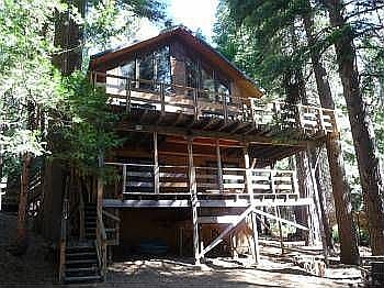 This 4 bedroom/2 full bath Chalet is located on a .82 acre backed up to forest land. It is completely private amongst the trees. Lots of sliding glass doors leading out to wrap around decks. Hot tub on lower level. Large kitchen/dining and living area. On top of all that, there is a game room downstairs with a wet bar. Upper and lower entry. Bridge walkway from driveway to main level. Mostly furnished. A Great Buy! A Must See!!