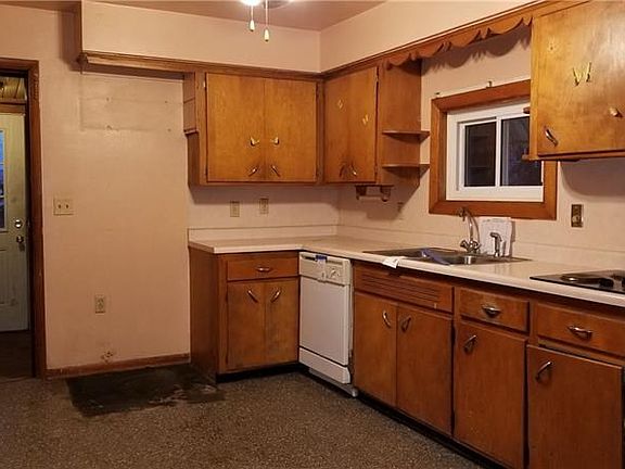 Nice level lot with this brick home that has a two car brick garage. Cozy small inside with potential. Kitchen with cooktop and build in stove and refrigerator. 2 Bedrooms and full bath on the main level. Livingroom with hardwood flooring. Back entry area could be used as an office. Upstairs attic area is currently insulated and could be finished into addition bedroom areas. Full basement. Paved driveway.