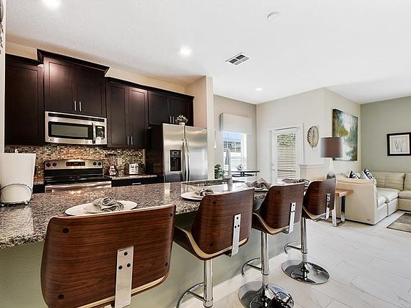 This stunning, professionally furnished 5/4 turnkey (ready to go!) townhome is located in the Retreat section of ChampionsGate. A wonderful end unit with no rear neighbors! With bookings for 2017 and 2018 in place, investors can start making money right away if they stay with the management company. ChampionsGate is a gated community with a full 18 hole golf course and 6 tennis courts coming soon. The 14,000 sq ft Oasis Clubhouse features a restaurant, 26 seat movie theater, fitness center, aerobics room, arcade room, resort style pools and a lazy river along with a splash area. This home is a must see!