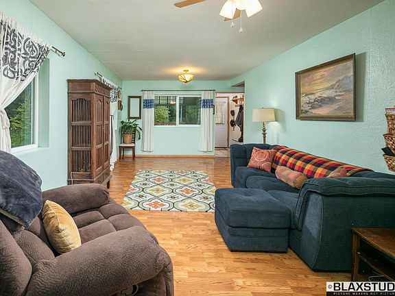 Charming Alaskan cottage on almost 2 private acres! Kitchen with tons of cabinets. Living room w/wood stove. Laminate flooring runs throughout the lower level. Large fenced greenhouse! Shed w/2 covered parking stalls & separate large wood shed. New siding, carpet & paint in 2016! New roof and septic in 2017. Feels like you've entered a fairy tale when you pull into this drive!