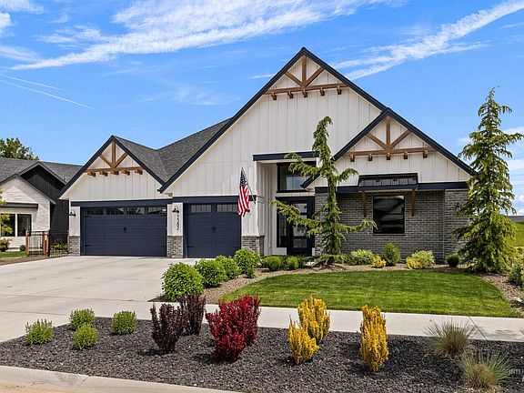 A modern take on the sophistication & charm of a traditional craftsman, this single level home is located in Legacy, one of Eagle, Idaho's most popular communities. This master planned resort style community features grand entries, ponds and water features, swim facility & pool house, 26 acre golf course, tennis courts, soccer fields, lush landscape amongst beautiful homes. Enjoy luxury everyday living surrounded by the warmth & brightness of this comfortable oasis that just feels like home. Stunning kitchen features Bosch appliances, 6 burner gas range, expansive island & ceiling height custom cabinetry. Primary suite features must haves like makeup vanity, free standing tub, enclosed spa shower, & access to back patio. Smart floor plan includes thru access from primary suite to laundry and mud room. Jack N Jill setup for the two bedrooms. Oversized back patio is a dream featuring outdoor entertainment setup with tv to enjoy Idaho outdoor living to the max. Minutes to Eagle dining, Boise River, & Greenbelt.