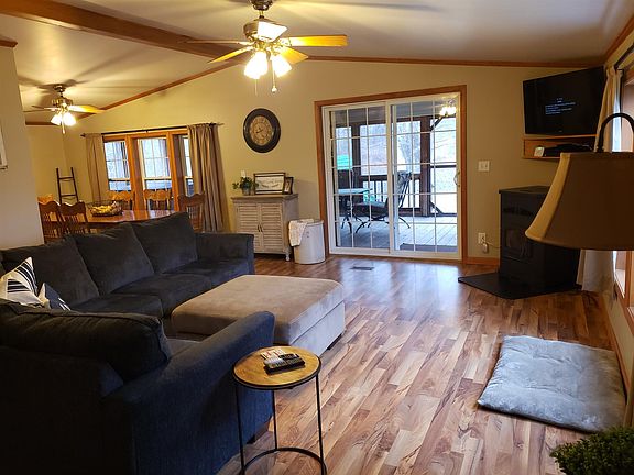 Come see this move in ready excellent condition home on a 2.74 Acre site in eastern Greene County. This property includes a 40' x 30' Pole Building and a large 2 Car Carport. This location offers convenient access to I-69, Crane and Bloomington. This manufactured home shows like a newer home and has a great Kitchen with stainless steel appliances. The large screened in porch (27.5' x 12') is very nice and has a concrete block foundation underneath. The hot tub, washer, dryer and pellet stove are not included in the sale. Included with the sale are the kitchen appliances, play-set outside and curtains except for the curtain above the stove. If you are looking for a move in ready home in a great location this is it!