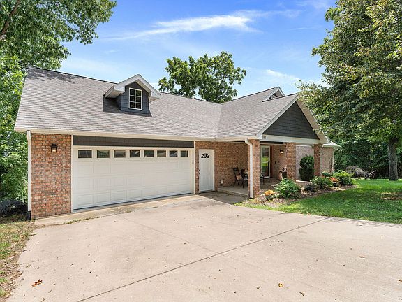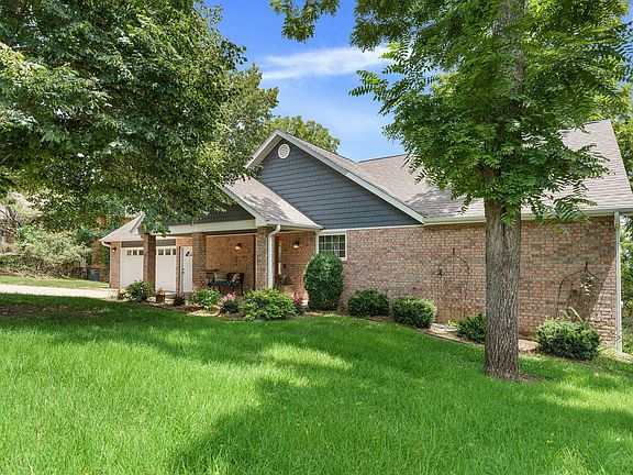 Check out this lovely home so close to Table Rock Dam and State Park Marina! Situated in a quaint neighborhood, this full brick house features an open floorplan with vaulted wood ceilings and an additional full kitchen in the lower level. Enjoy a cup of coffee on the screened in back deck, which is also a feature off the walkout basement. All the bedrooms are good size and have walk in closets and en suite bathrooms. The hardwood flooring on the main level, granite counters in both kitchens and solid oak doors reflect the nicer finishes one would expect on a full brick home near the lake. The front and back yard has a sprinkler system. There is a winter lake view. and then treelined backyard in the summer for privacy. The roof is newer and the home is well maintained. Must see!