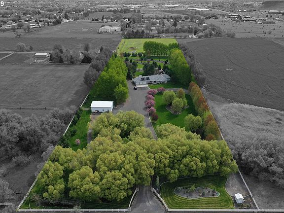 Extensive remodel with an addition was done on this home within the last 5 years! Due to this, the electrical, plumbing and ducting is basically all new! Also new are roof, exterior doors, exterior paint and all windows. Find privacy in this home sitting on 10.02 total acres with 6 acres park like setting with trees, pond, waterfall, and rock river bed and then 4 acres are in field grass. 9.2 acres water rights from HID. Shop has 1632 sf, lights, outlets and drive thru doors. Attached 3 bay garage has 1168 sf, finished, and infrared heat. Entire home has custom oak cabinets, trim pkg, window wrap, solid doors built-ins and window seats from Valley Cabinet. Engineered hardwood, slate and tile flooring. Living area, dining and kitchen have vaulted ceilings. Gorgeous stone wall with 3-way viewing gas fireplace that makes you say "WOW!" and has a hide-away 1/2 bath off the dining room. Gourmet kitchen has soft close doors/drawers, drawer organizer, pull-out shelves, pantry spice organizer, LED accent lighting, granite counters, full tile backsplash, garden window, octagon island with bar sink, wine bottle & glass racks. All appliances included. Dining room has sliding doors taking you out to the outdoor entertainment area with salt water & solar heated pool and covered patio. Luxury master suite has prominent stone wall with gas fireplace, inset shelving and TV hookup and arched entry into the awe-inspiring en suite! Take all your stresses away in the jetted tub or the walk-in steamer shower. Add a romantic touch to the room with accent lights that shine up thru the granite countertops. Double copper sinks, storage drawer for iron/hair dryer with outlets. Off the en suite is a room with built-in cabinets which could be used for crafts/sewing, exercise, or sitting area. Both the master & extra room have sliding doors to the covered trex deck which has ceiling fans and infrared heaters so you can enjoy it almost year round. Well casing & pressure tanks, irrigation pump & spare pump, pool heater & filter are all 3 years old. There is so much more to this home - Please Call/Email us for a list of amenities! Shown by appointment only. Pre-Approved buyers only. **Home is located on a dead end lane - please no drive by viewings**