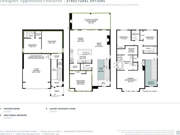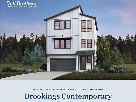 The light and bright Brookings offers an open main level with ample windows, and great space for entertaining. The great room opens through a multi-panel stacking glass door to a large, covered outdoor living, complete with an exterior fireplace. The primary suite on the third floor is spacious, with large windows, a primary bathroom with soaking tub and dual-sink vanity, and a roomy walk-in closet. The first floor features a bedroom with full bathroom, along with a spacious bonus room. Disclaimer: Photos are images only and should not be relied upon to confirm applicable features.